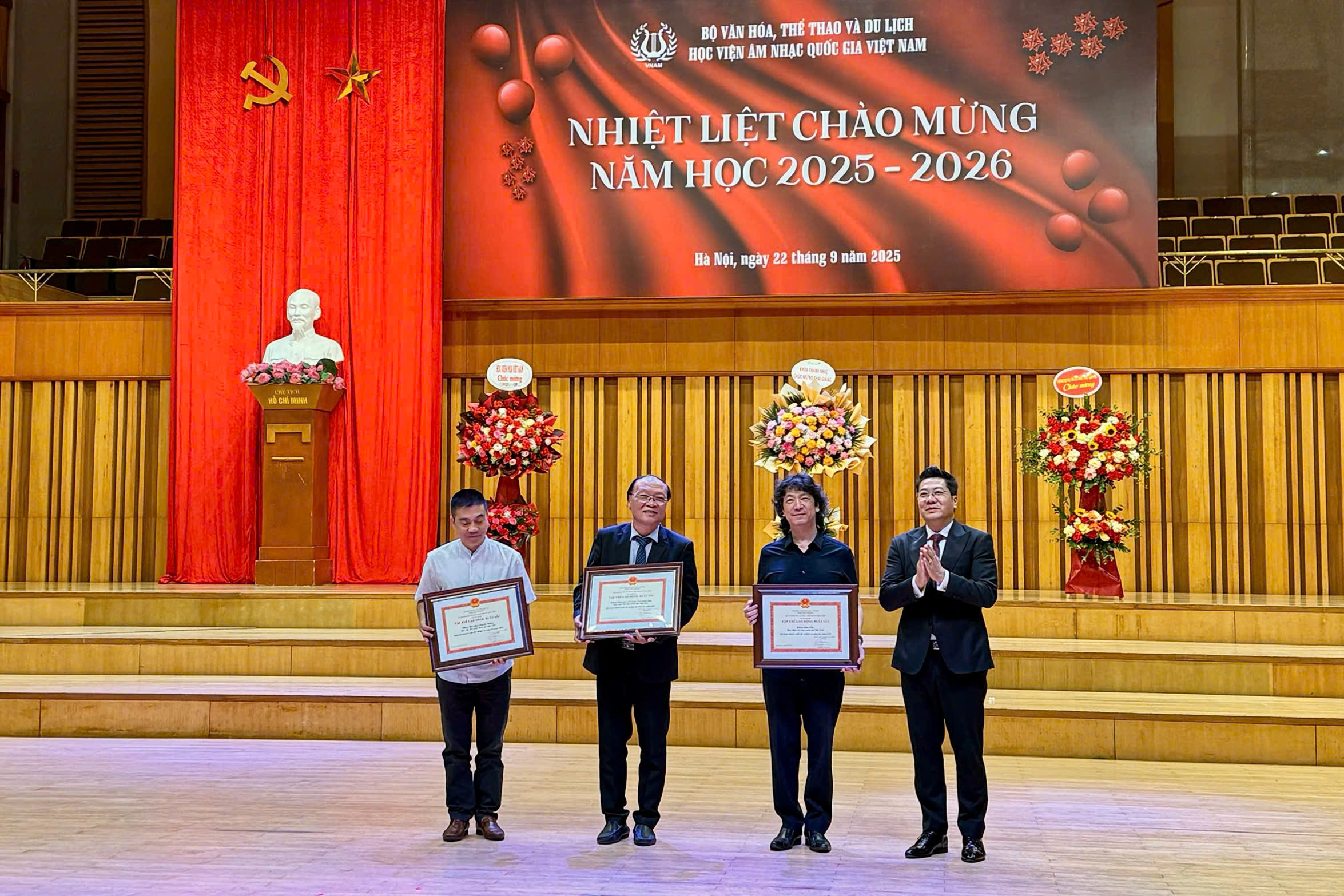 Nhân kỷ niệm ngày Nhà giáo Việt Nam 20-11-2020, Học viện Âm nhạc Quốc gia Việt Nam đã tổ chức buổi lễ long trọng nhằm tôn vinh và tri ân các thế hệ Nhà giáo đã và đang đóng góp tâm sức cho sự nghiệp giáo dục âm nhạc của Học viện. Tới dự buổi lễ có đông đảo các Nhà giáo lão thành, các cộng tác viên, các giảng viên, cán bộ, viên chức và sinh viên, học sinh Học viện. PSG.TS. Tạ Quang Đông, Thứ trưởng Bộ VHTTDL tham dự buổi lễ và phát biểu chào mừng.