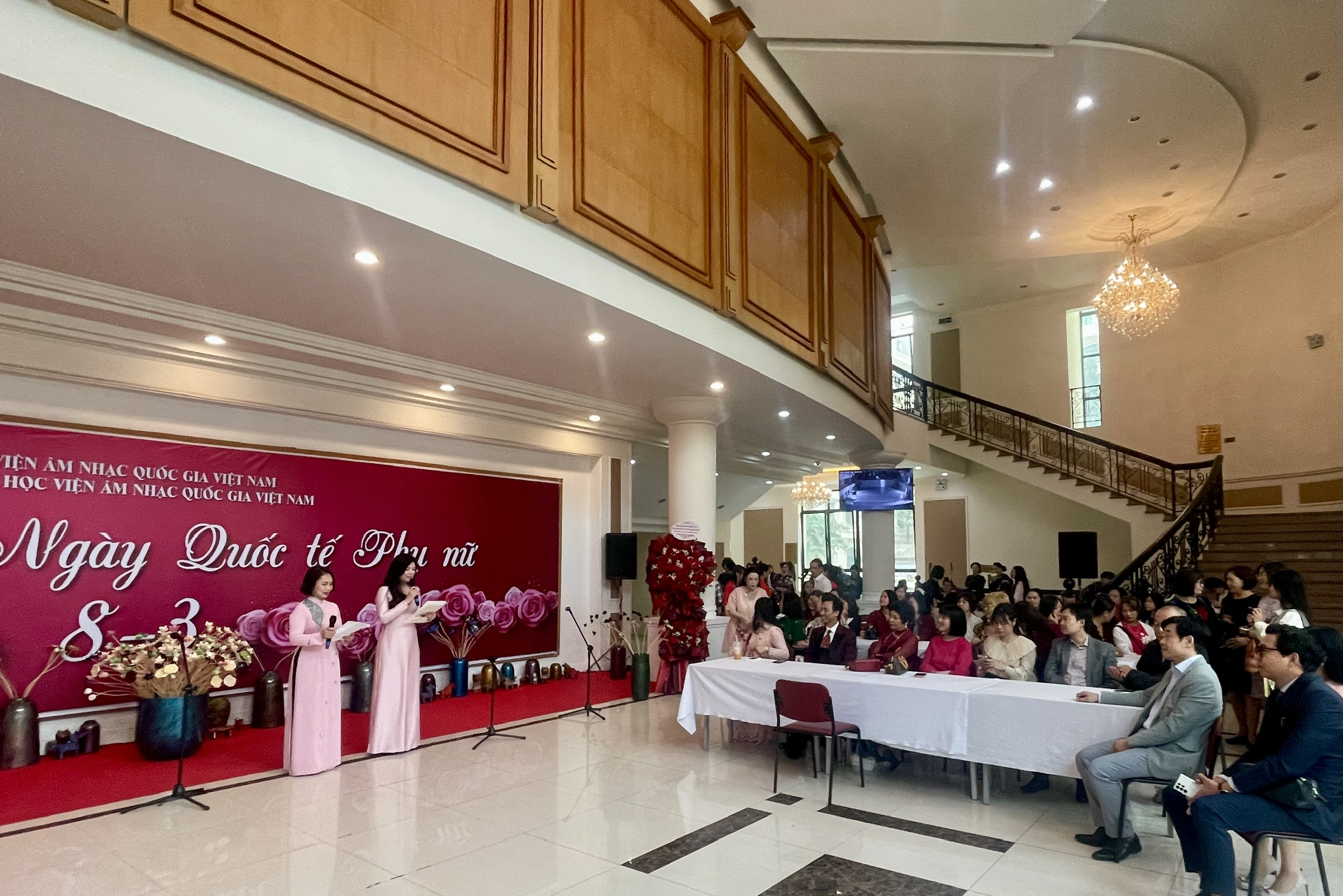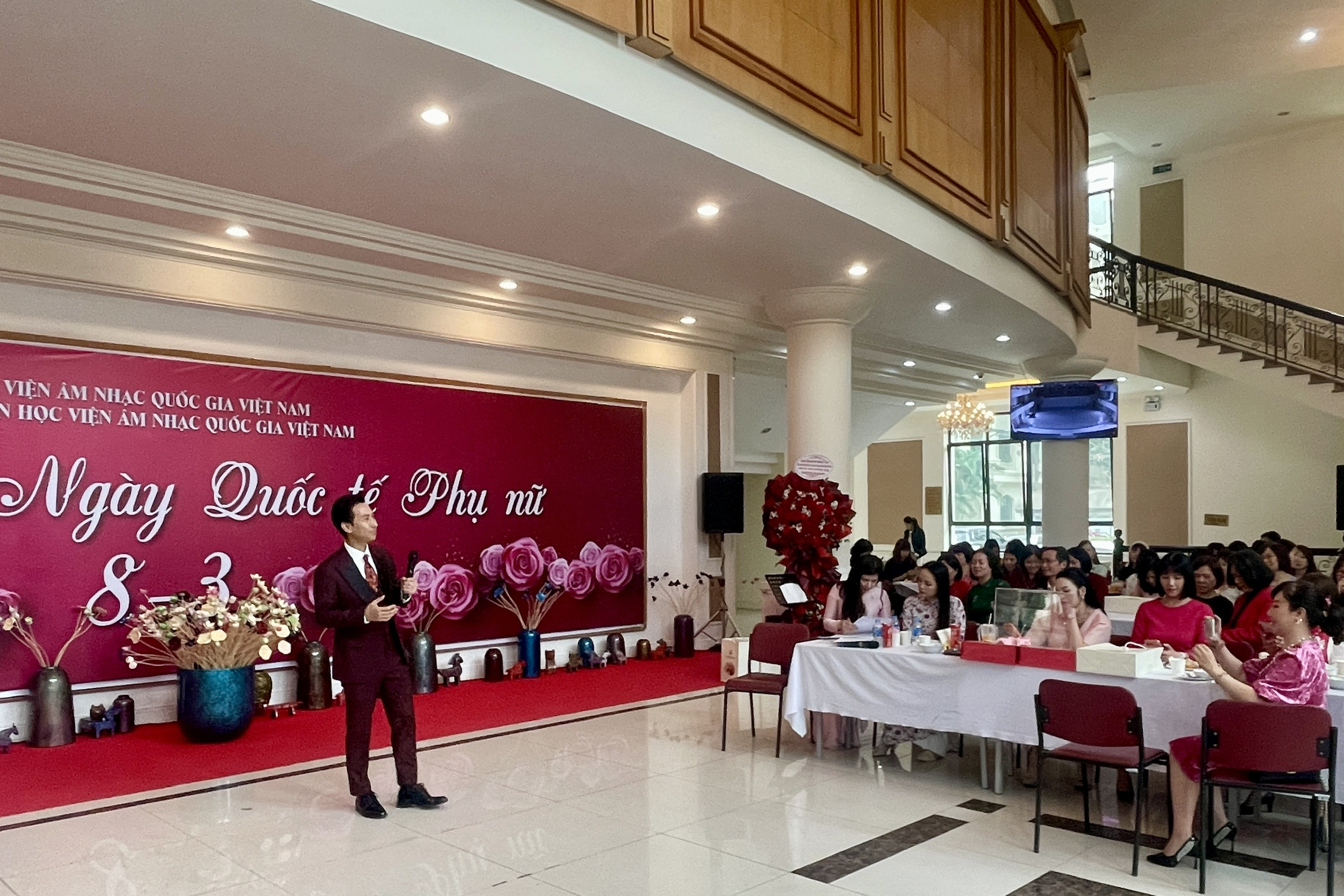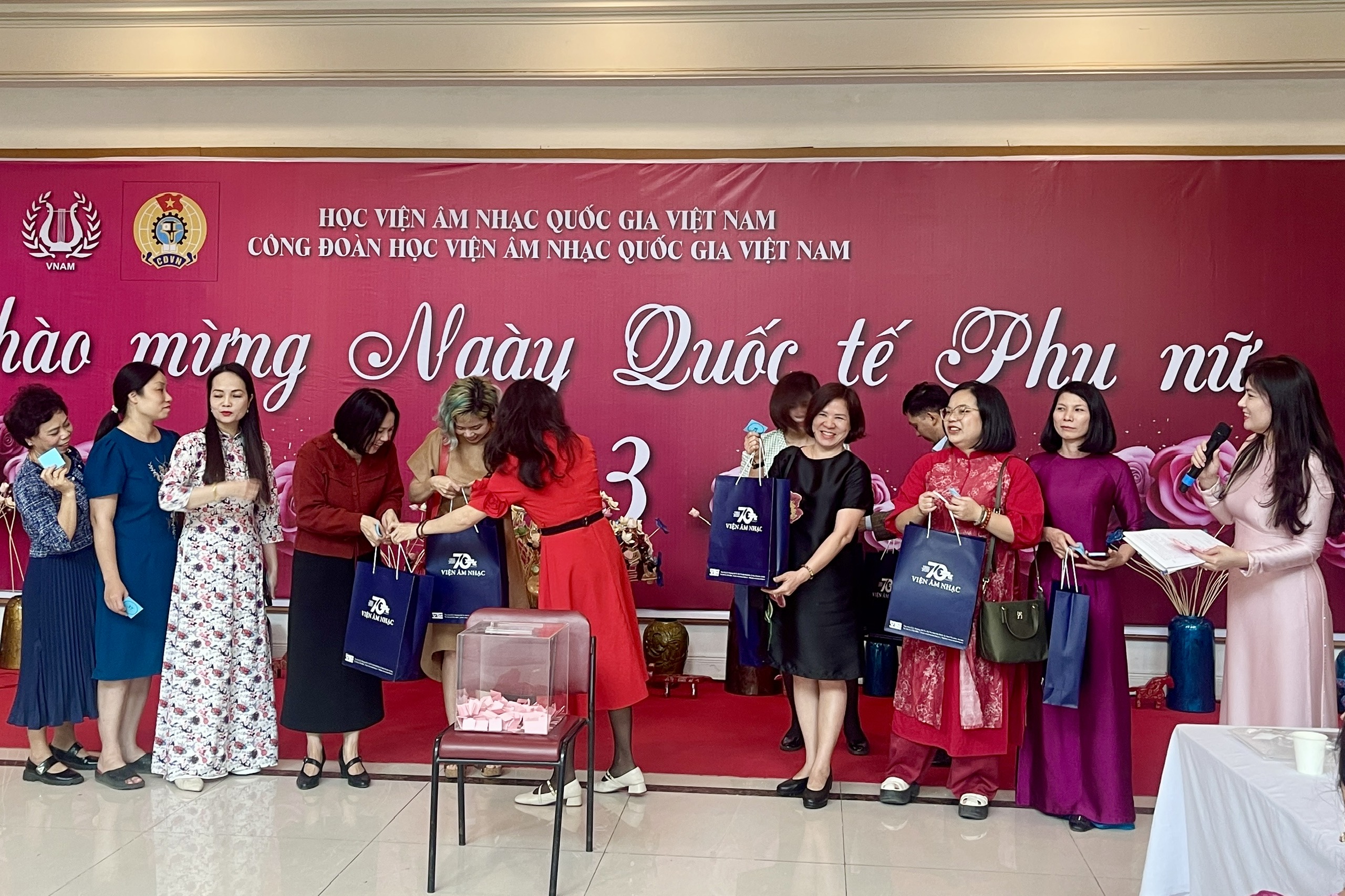 Tham dự chương trình có các đồng chí trong Đảng ủy, Ban Giám đốc, Ban Chấp hành Công đoàn cùng đông đảo cán bộ, giảng viên và người lao động trong toàn Học viện. Đây là hoạt động ý nghĩa nhằm tạo không gian giao lưu ấm áp, đồng thời tôn vinh những giá trị tốt đẹp và đóng góp quan trọng của nữ cán bộ, giảng viên trong sự nghiệp giáo dục nghệ thuật của Học viện.